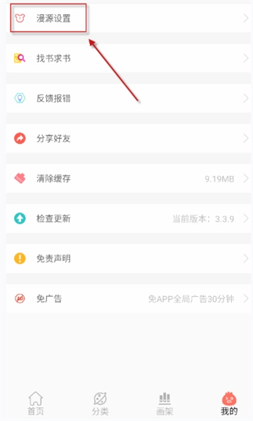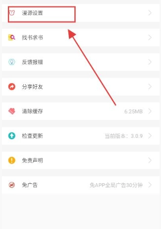 4、在搜索页面搜索栏旁边点击“漫源”就可以进入漫画源切换页面