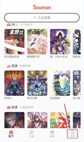 1、打开Souman软件,点击界面右下角的“我的”选项