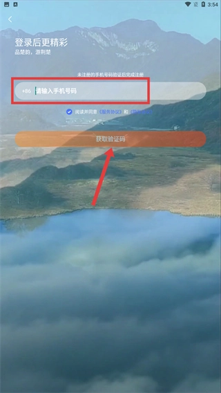 3、在登录页,输入手机号码,勾选协议后,点击【获取验证码-按钮】。