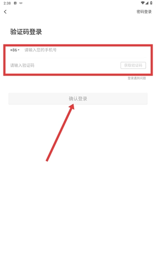 3、在验证码登录页,填写手机号与获取的验证码后,点击【确认登录-按钮】。