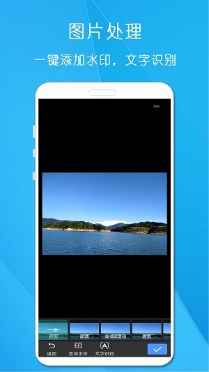 软件首页整合了多种功能,支持通过扫码快速识别文字与证件照;导入软件的图片可快速提取文字,还能一键为照片添加水印。