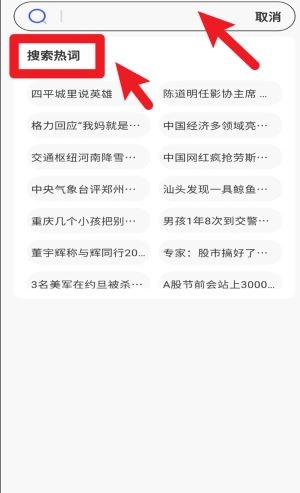 3、点击顶部搜索框可进入搜索模式,浏览器还会展示当前热门搜索词,方便用户快速了解热点。