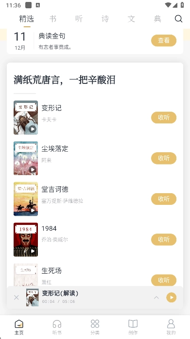 典读是一款兼具优雅设计与全面内容的经典文学阅读听书应用,收录了数百万条古今中外的名言金句、诗词曲赋、名著典籍以及美文典故。