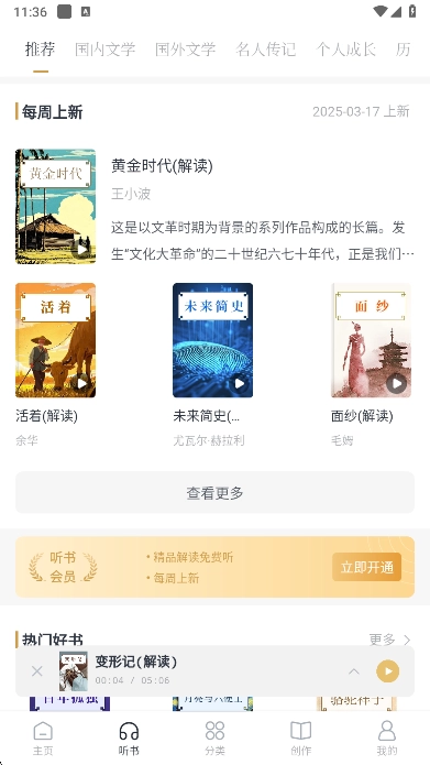 2、如果您喜欢听书可以在听书版块获取到全面的听书内容