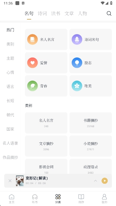 3、更是带来了众多的听书分类可以快速筛选