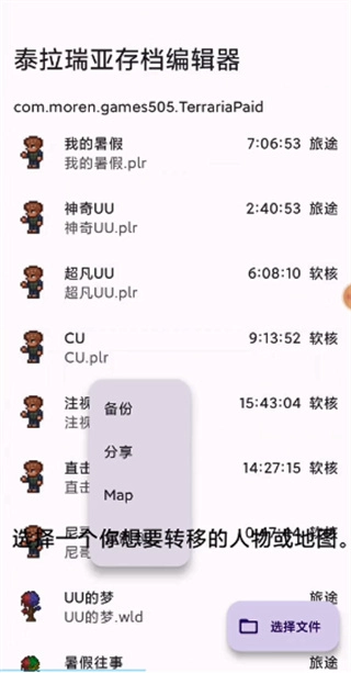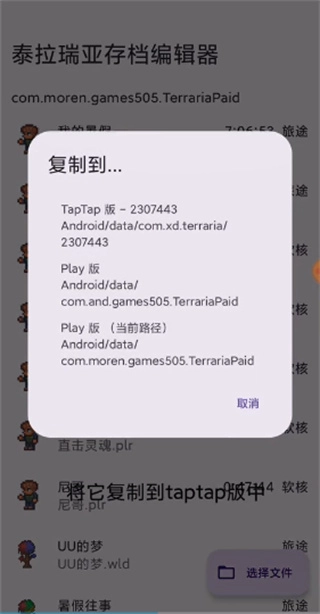 3. 进入存档编辑界面,选择刚刚复制完成的存档文件,即可完成导入操作。
