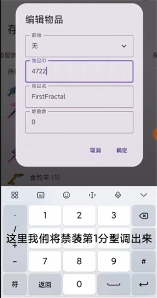 3. 在编辑物品界面中,首先调出禁装第1分型选项。