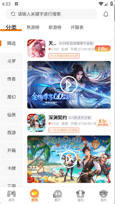3、游戏页面可以将游戏进行了详细的归类,不管是三国、玄幻还是传奇等类型都有;
