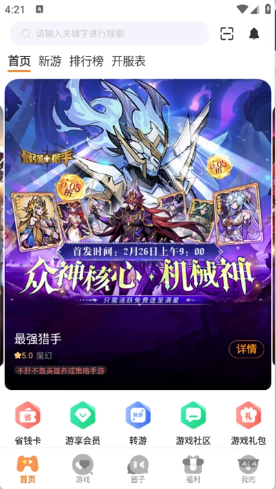 2、首页为玩家提供了很多的热门游戏资源;