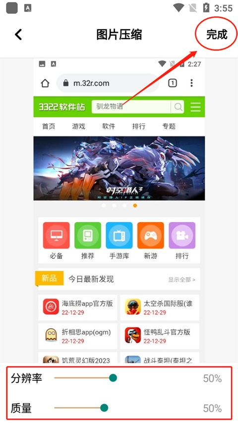 3、然后在设置完【分辨率】和【质量】后,点击【完成】即可。