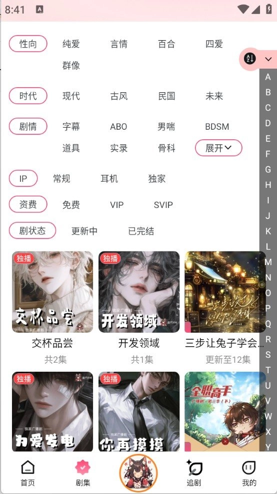 3、在剧集页面,可按类别浏览精选广播剧。