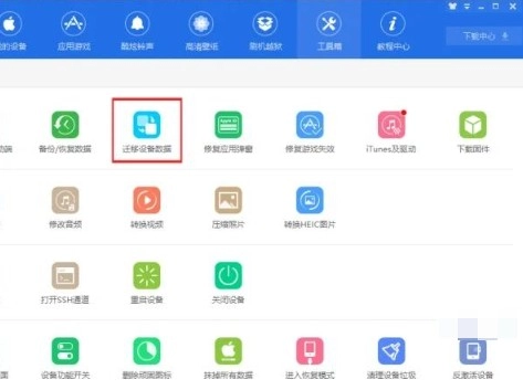 2、打开爱思助手后将两台需要进行操作的苹果手机通过数据线连接电脑。