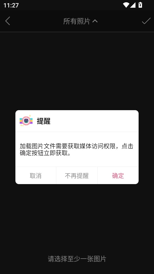 4.在本地相册界面,任意勾选一个照片后找到右上角“√”按钮点击进入下一步
