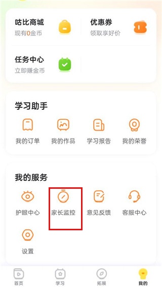 4. 若不放心,还能够开启家长监控功能,对孩子的学习予以监督。