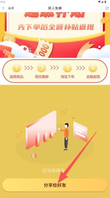 1、在首页点击顶部“新人免单”活动入口进入活动页面。