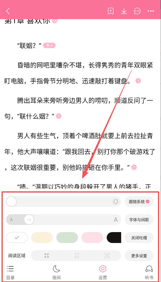 4、阅读设置选项支持用户自由调整,可打造最契合个人喜好的阅读环境,助您畅享无阻碍的阅读乐趣。