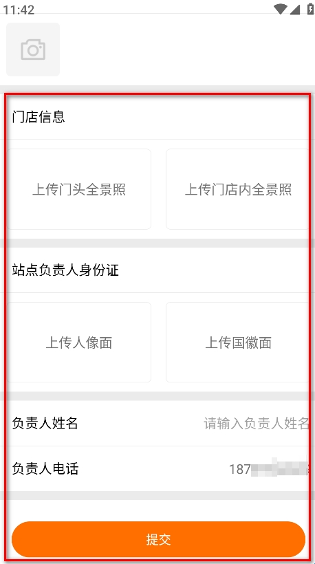 5、请上传门店信息照片、站点负责人身份证正反面照片,接着填写负责人姓名,最后点击提交按钮就可以了。