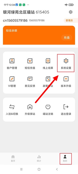1、安装喵站应用,登录账号后点击底部导航栏的“我的”选项,随后进入“系统设置”页面。