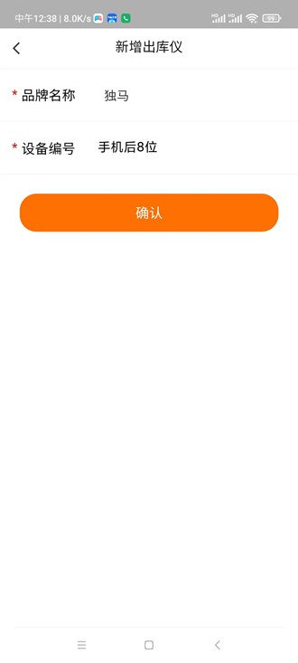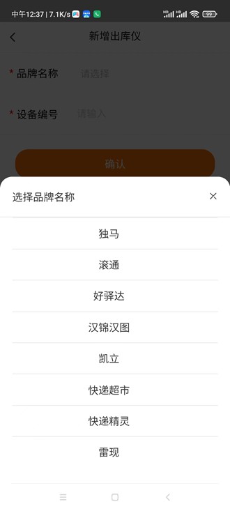 3、挑选出库仪的品牌,填写设备编号(推荐采用手机号的后8位数字)。
