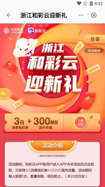 3、点击你想参与的活动,这里以领流量为例,在活动页面点击领取就可以了,不过要留意活动介绍和规则