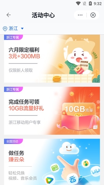 2、这里设置了不少福利活动,涵盖流量赠送、话费补贴以及各类平台会员等权益,虽然不同地区的活动内容或许存在差异,但整体福利力度都很可观。