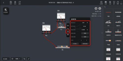 1. 可随时切换不同模块 2. 根据实际需求,在右侧器材栏选择所需器材,就能开展组装与探究活动
