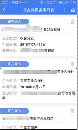 3、选定企业,办理变更业务并进入办理流程后,点击垃圾桶图标,即可删除该企业的变更办理业务