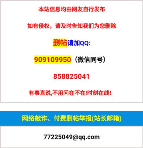 1、若有删帖或投诉需求,请联系QQ:909109950(微信同号)或858825041。
