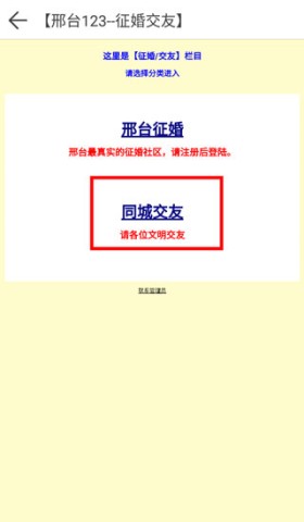 1、首页先点击“征婚/交友”,然后在下个界面选择“同城交友”。
