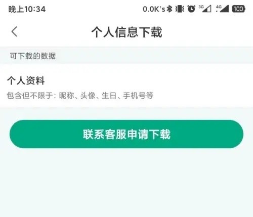 4.在个人信息界面中,点击联系客服申请按钮,相关的个人资料涵盖昵称、头像、生日、手机号等内容。