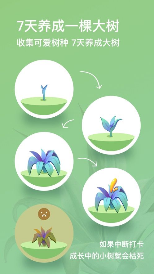 2、积千累万,不如养个好习惯!把每天的目标规划好,就像培育一颗植物那样,每天打卡能让小树不断成长,可不能中断哦。坚持培养习惯,慢慢就能养成一片森林,有需要的朋友可以用打卡森林最新版来试试~