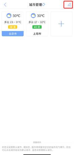 2、进入“城市管理”页面后,点击页面右上角的“编辑”按钮。
