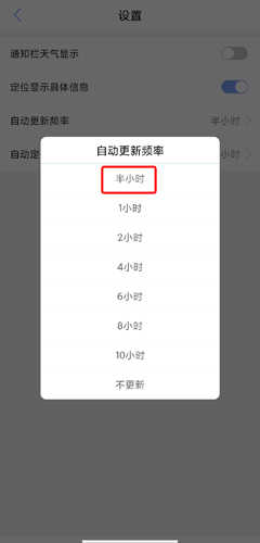3、将天气自动更新的时间频率调整为“30分钟”这一选项。