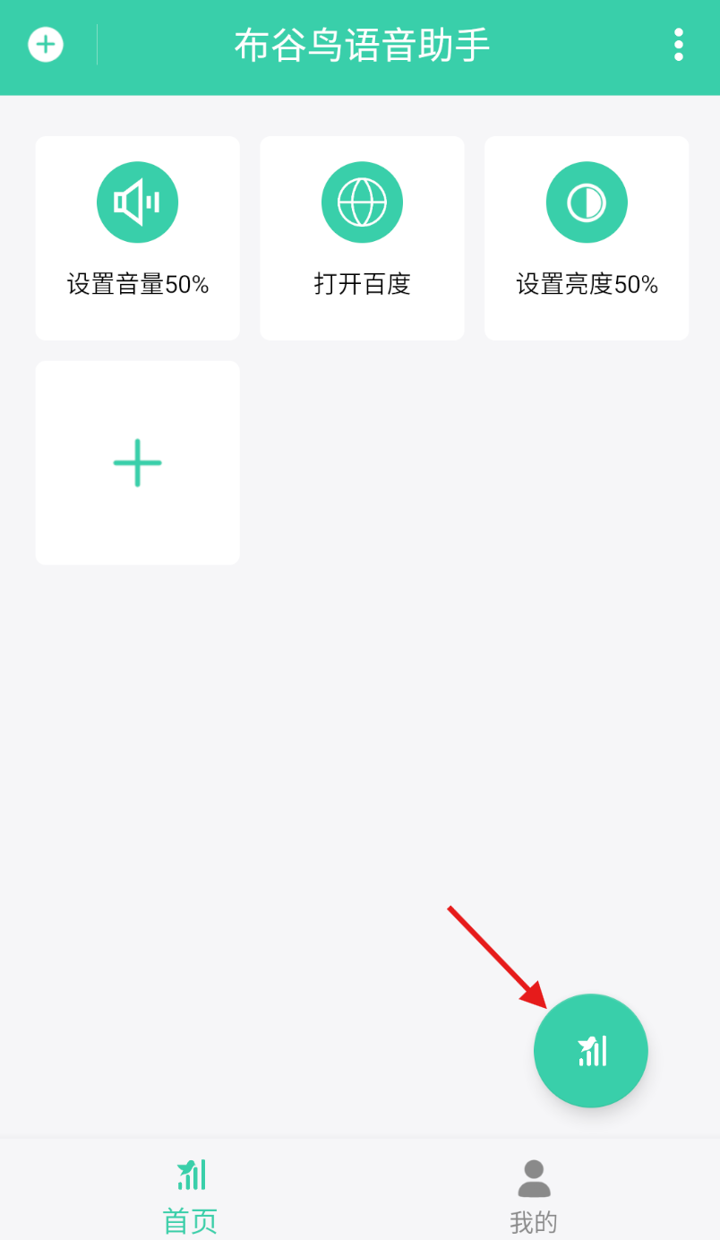 1、打开布谷鸟语音助手应用,在首页找到并点击软件专属标志。