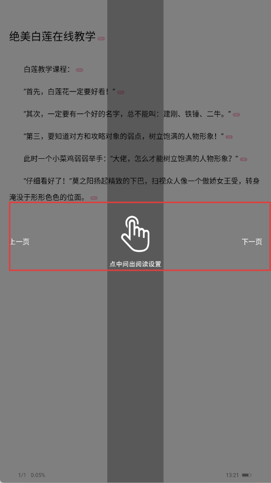 3、阅读小说时,点击屏幕中间区域,调出阅读设置选项,进行相关调整。