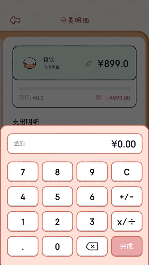 5、用户记账时,可选择不同的金额与分类,从而创建更详尽的收支记录。