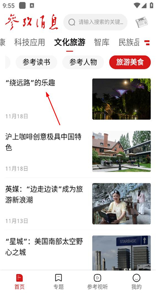 打开软件后,进入文化旅游板块,找到《绕远路的乐趣》这类文章,点击进入即可查看详情页面的内容。
