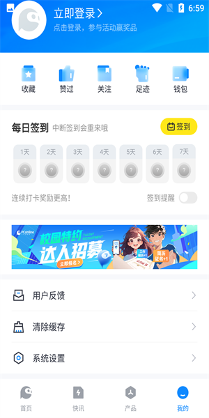 4、点击“我的”就能参与每日签到,累计签到天数越多,可领取的奖励就越丰厚,快来体验吧。
