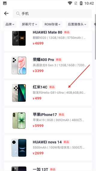 3、挑选心仪的手机型号,进入详情页。