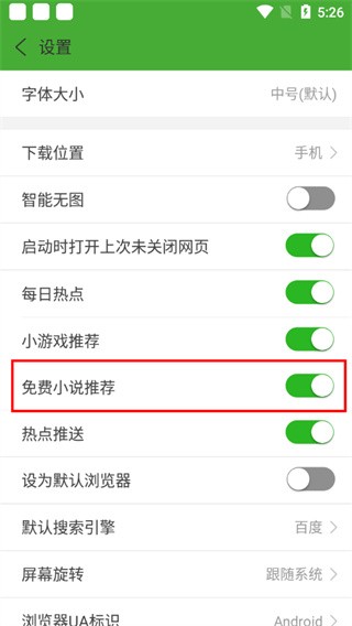 6、当“免费小说推荐”的按钮颜色不再为绿色的时候,问题就得到解决了。