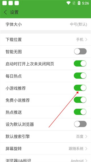 6、当“小游戏推荐”的按钮颜色为绿色的时候,问题就得到解决了。
