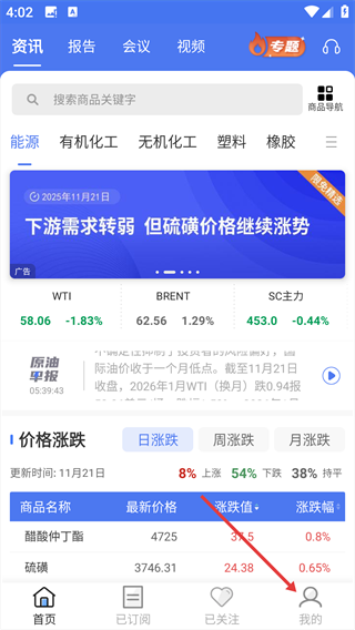 1、行业覆盖范围广:涵盖能源、化工、塑料等多个领域,全面覆盖大宗商品行业,提供一站式的资讯服务。