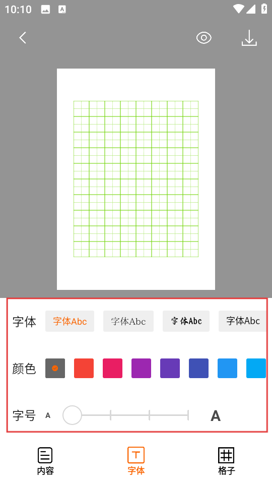 2、自定义程度高:支持自定义创建字帖内容,还能调整字帖颜色,让用户根据自身使用习惯与视觉偏好,打造专属练字素材,提升练字舒适度。