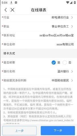 4、按照页面给出的提示,填写个人基本信息以及领卡的方式,随后点击“下一步”按钮。
