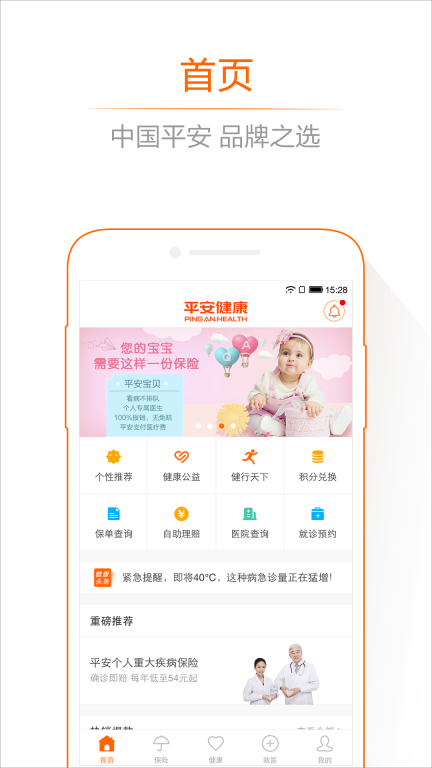 平安健康手机版:为您和家人的身体健康提供全面的保险服务,支持在手机端直接挑选保险产品、在线完成投保流程,此外还能享受VIP会员专属优惠!