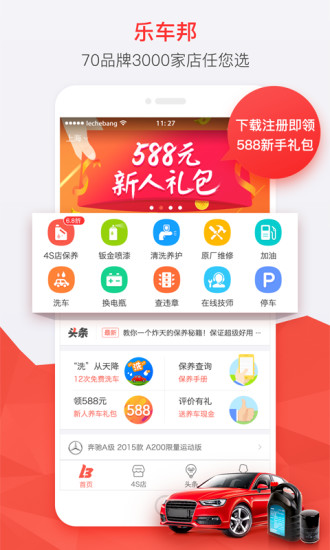 乐车邦是一家整合汽车4S店服务网络的汽车售后电商平台,为广大车主提供涵盖4S店汽车保养(享6.8折优惠)、加油充值、优惠洗车、违章查询、漆面修复、电瓶更换、清洗养护以及原厂维修等在内的多种汽车售后服务。截至目前,乐车邦已累计帮助全国1100万车主节省了5亿元养车开支。乐车邦,堪称聪明车主的4S店养车必备神器!