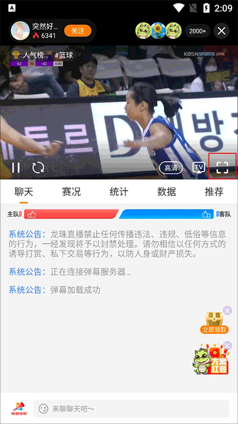 进入直播间后我们点击全屏。