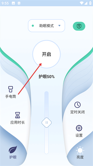 3、点击【开启】按钮,启用助眠模式。