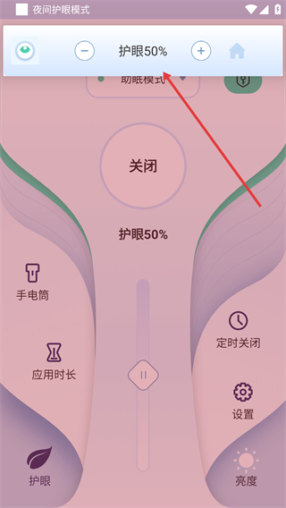 4、启用后,界面显示护眼50%的夜间护眼模式,完成助眠模式的开启操作。