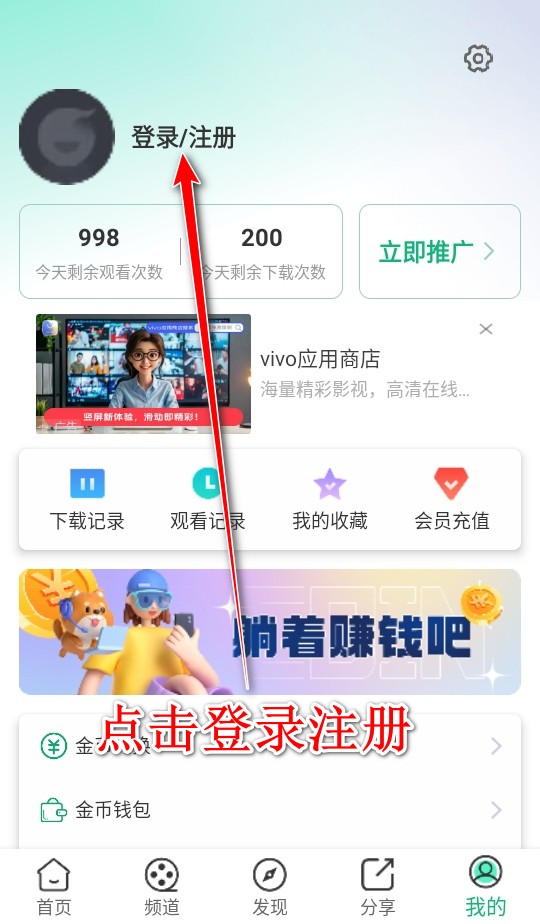 4.当然用户们想一直免费观看橙子视频也有相对应的方法,在我的页面点击登录注册。